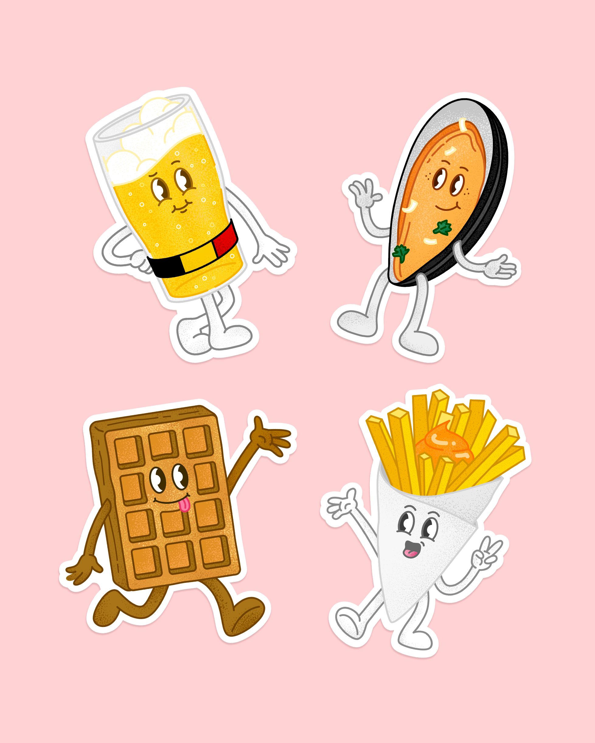 Lot de 4 stickers dessinés, imprimés et découpés par mes soins. Fait 100 % à la main.